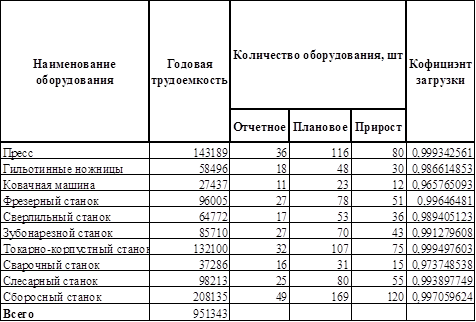 Коэффициент загрузки оборудования определяется делением расчетного количества оборудования на принятое количество оборудования:
