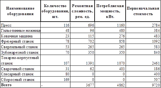 РСi - ремонтная сложность единицы оборудования (таблица 1.2);