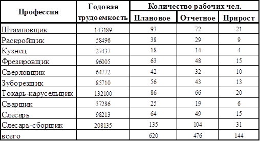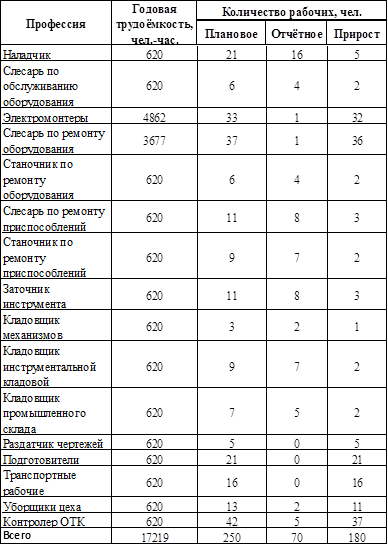 К персоналу предприятия относятся следующие работники: производственные (основные) и вспомогательные рабочие, специалисты (инженерно-технические работники), служащие, младший обслуживающий персонал, работники управления. Количество производственных (основных) рабочих рассчитывают по видам рабочих мест с учетом годовой трудоемкости работ на этих местах: