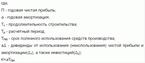 Показатель рентабельности активов, если в числителе его учитывать не годовую, а интегральную чистую прибыль за срок полезного использования активов, приобретает то же выражение.