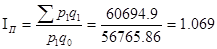 Индивидуальные индексы указывают на разнобой в изменении цен и количеств по грузам А, В, С, Д. Агрегатные индексы указывают на общие тенденции изменения. В целом стоимость перевозимых грузов уменьшилась на 13%. Причина в том, что самый дорогой груз уменьшился на 42% по количеству, а его тариф почти не изменился.