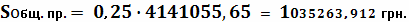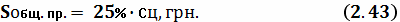 Вычислим общепроизводственные расходы составляющие 25% от цеховой себестоимости [2]: