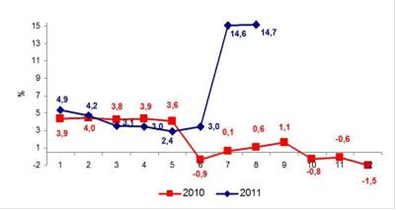 года в сравнении с аналогичным периодом 2010 года возрос на 5,5%