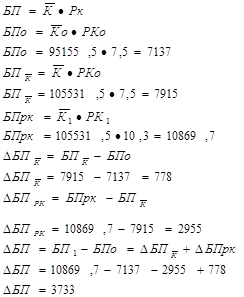Проведенный анализ свидетельствует о том, что на изменение БП положительное влияние оказывает оба фактора, в результате чего БП увеличилась в 2008 г., по сравнению с 2007 г. на 3733 тыс. руб.