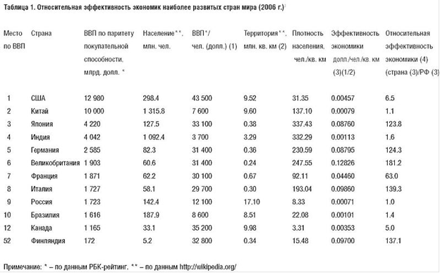 Таблица 1. [Александр Смирнов. Движение к «инновационной экономике» должно стать более последовательным. Кремль. Орг. 1 июля 2008 года.]
